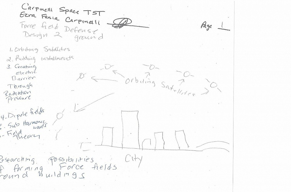 Forcefield Defense basic building and city layout: USING CURRENT ORBITING SATELLITE ENERGY FROM SPACE SATELLITE TO GROUND CREATING AN ELECTRIC FORCE FIELD BY SIMULATING RADIATION PRESSURES OF MOMENTUM BY GROUND AND BUILDING INSTALMENTS OF ENGINEERED SUBHARMONIC WAVES, DIPOLE FIELD APPLICATION AND EMF FIELDS. In some cases intense electromagnetic radiation from space-based direct energy satellites could cause repulsion effects on the particle beam. For this to the satellite's beam would need to interact with the accelerator's internal components, a high-intensity plasma field, or the charged particles themselves. Electric repulsion field refers to the electric field that causes repulsion between like charges. An electric field is a region of space around a charged object, and exerts a force on other charges. When two objects with the same type of charge both positive or both negative are in the same region, the electric fields they create produce a repulsive force, pushing them apart. Electrostatic repulsion: If an accelerator floods an object with protons, it will become a positive charge. This charged object becomes repelled by other positive charged objects.