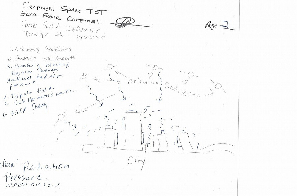 ARTIFICIAL RADIATION PRESSURE MECHANICS: Carpinelli Space TST Theoretical model combines natural gravity and Electrostatic Particle Generators (Particle accelerators) installments on exterior of buildings to simulate Artificial Radiation pressures creating fortified electric field barriers around each building. GRAVITY PULLS MATTER INWARD........RADIATION PRESSURE PUSHES MATTER OUTWARD..........Creating a repelling resistance force fields between Electricity and gravity. In some cases intense electromagnetic radiation from space-based direct energy satellites could cause repulsion effects on the particle beam. For this to the satellite's beam would need to interact with the accelerator's internal components, a high-intensity plasma field, or the charged particles themselves. Electric repulsion field refers to the electric field that causes repulsion between like charges. An electric field is a region of space around a charged object, and exerts a force on other charges. When two objects with the same type of charge both positive or both negative are in the same region, the electric fields they create produce a repulsive force, pushing them apart. Electrostatic repulsion: If an accelerator floods an object with protons, it will become a positive charge. This charged object becomes repelled by other positive charged objects.
